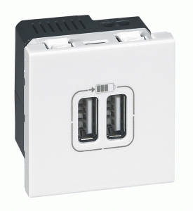 Prise double chargeur USB Programme Mosaic : une prise universelle pour recharger tousles appareils mobiles. En réponse aux exigences de la CEE, Legrand propose une nouvelle prise chargeur USB universelle, du programme Mosaic. Elle est cinq fois plus économique en veille que les chargeurs « ancienne génération » et elle est compatible avec tous les appareils mobiles du marché, équipés d’une connectique micro/USB. On peut ainsi recharger en un temps record un smartphone, une tablette, un GPS etc…