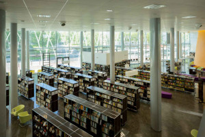 Au total, la médiathèque Nelson Mandela est équipée à 90 % de luminaires Trilux. L’intérieur du bâtiment accueille aujourd’hui cinq espaces conviviaux : un kiosque en rez-de-jardin pour la presse et les actualités, un espace CinéRomans en rez-de-chaussée dédié à la création littéraire et cinématographique, une médiathèque des enfants pour les jeunes de 0 à 11 ans, une mezzanine des arts pour la musique ou encore la littérature et un pôle documentaire consacré aux sciences sociales, à la formation, à l’emploi, aux sciences et aux loisirs.