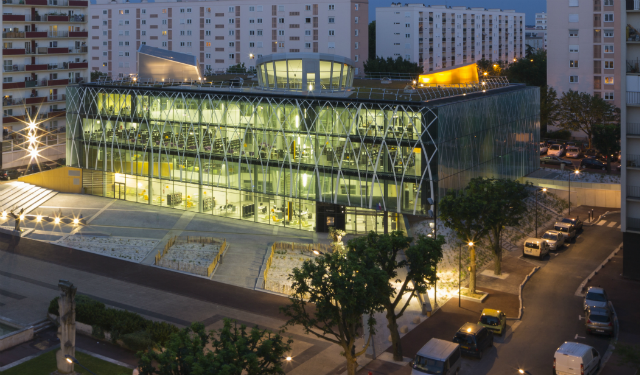 Cube de lumière posé au milieu de la place de l’Abbaye à Créteil, la toute nouvelle médiathèque a ouvert ses portes au public au printemps dernier après trois années de travaux. Sur plus de 5 200 m², cette médiathèque tout en fibres et en transparence, conçue par le cabinet d’architectes Chabanne & Partenaires, propose une multiplicité de prestations et permet d’envisager une grande diversité d’usages par tous les publics: