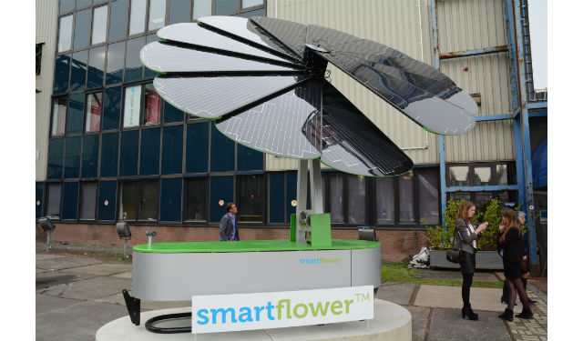 La Smartflower repose sur un concept simple : allier design, économie d’énergie et consommation propre. Commercialisé et distribué en France, ce produit créé en Autriche représente une rupture avec les produits traditionnellement inscrits dans le marché du photovoltaïque. En effet, la Smartflower est conçue sous la forme d’une fleur, composée de 12 pétales, chacun équipé de 40 cellules photovoltaïques monocristallines. Rassemblés, ils recouvrent 18 m² de surface photovoltaïque, permettant une puissance nominale de 2,31 kWc. Ce produit se décline sous plusieurs formes : l’une permettant une rétractation totale des pétales solaires dans un coffre prévu à cet effet, et l’autre (la Smartflower POP), fonctionne sur le même principe, mais avec un pylône central fixe, entouré d’un capot dont la couleur peut être modifiée selon les souhaits du client. Ce générateur fonctionne de manière autonome : il se déploie automatiquement à l’apparition des premiers rayons du soleil, et suit la course du soleil tout au long de la journée en pivotant sur un double axe horizontal et vertical. Lorsque le soleil se couche, la fleur se referme automatiquement. Ce système se différencie des panneaux solaires classiques, qui restent statiques et nécessitent une modification de la toiture des consommateurs, parfois coûteuse et complexe. Le produit possède également une capacité mobile si le particulier déménage, ce qui reste impossible avec des panneaux solaires classiques. En effet, le système permet au client d’emmener sa « fleur » sur son nouveau lieu de vie, après s’être affranchi des fixations en béton qui lui servent d’amarres.