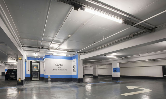 Le parking Lafayette situé dans le centre-ville de Grenoble compte 280 places sur deux niveaux. Il a fait l’objet d’une rénovation complète de l’éclairage. L’opération pilote a été menée à bien au sein d’une collaboration entre l’exploitant Effia, le distributeur et conseil en éclairage MCS Éclairage, Buildy pour la mise en oeuvre du système de gestion et RZB qui a fourni les luminaires étanches Planox Eco.