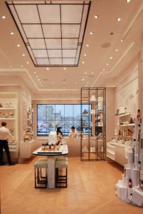 « Nous avons été mandatés, explique Akari-Lisa Ishii, pour travailler sur la mise à jour du concept global (guidelines) lumineux représentant les trois univers de la marque déclinés dans le monde entier : l’univers Appartement parisien (parfums), l’espace Backstage (maquillage) et la zone Prestige (soins de beauté). Chaque étude technique comprend une ambiance différente propre à chaque univers, avec notamment des températures de couleur et des intensités de lumière spécifiques, des sélections de matériels et des implantations types. »