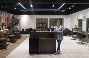 Il y a quelques années, le groupe Lucibel a entièrement refait l’éclairage du centre Leclerc Pont Michel de Nice. À l’automne 2021, son directeur a démarré une réfection de la galerie marchande, et a souhaité continuer sa collaboration avec la marque. La rénovation du salon de coiffure, L’instant Beauté, devait repositionner le lieu dans les codes esthétiques du moment, alliant le noir profond, le blanc lumineux et les matériaux nobles tels que le bois et le cuir. Le salon devait également présenter deux espaces distincts et complémentaires : une partie barbier et une partie coiffure.