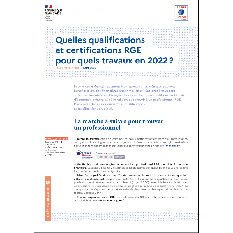 Légende : Fiche technique sur les qualifications RGE remise à jour