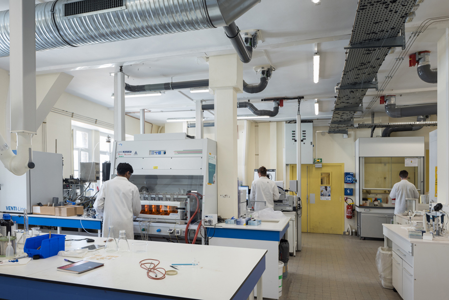 Photo des locaux de l’école nationale supérieure de chimie Paristech-PSL, à Paris, rénovés avec le système de gestion Syslmart Connected de Sylvania. © Sylvania. Photo Arthur Pequin