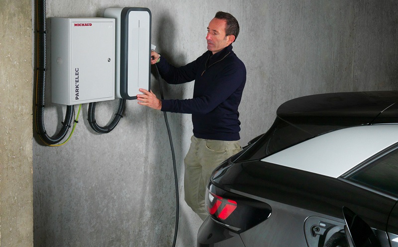 La société Michaud a conçu Park’Elec, une solution technique française complète qui permet de pré-équiper les parkings collectifs en IRVE.