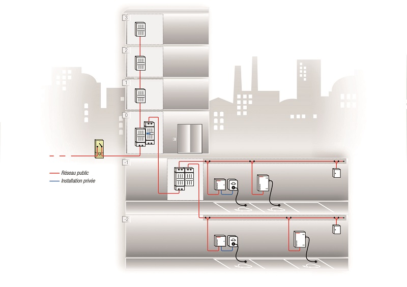 Pour les immeubles neufs, il y a une obligation de pré-équipement, mais c’est assez sommaire : passage des câbles et réservation de puissance associée à la mise en place de dispositifs de sécurité (loi LOM). Il y avait quelquefois des problèmes techniques lorsque l’on était sur “le droit à la prise”. Mais les nouvelles solutions sont adaptées à l’installation d’un grand nombre de points de recharge, voire à l’électrification complète des places de parking intérieur ou extérieur d’un immeuble. »