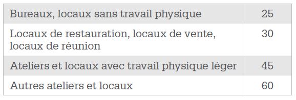 A ce jour, le texte de référence est la règlementation pour les bureaux qui définit les débits minimaux par typologie d’usage.