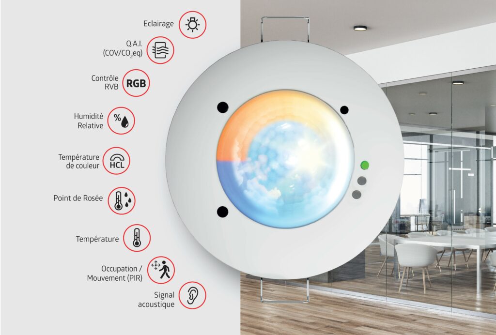 Il y a en tout premier lieu les capteurs de mesure de la qualité d’air qui sont déployés dans différentes zones du bâtiment. Ensuite sont typiquement déclinés :