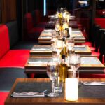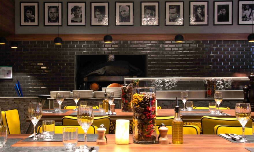 Les tons sont chauds : le rouge se marie avec le doré qui s’harmonise avec le bois. Afin de conserver cette atmosphère, tous les luminaires affichent une température de couleur de 2 700 K, accompagnée d’un indice de rendu des couleurs de 90 (R9 supérieur à 80) qui met en valeur les matériaux et le contenu des assiettes.