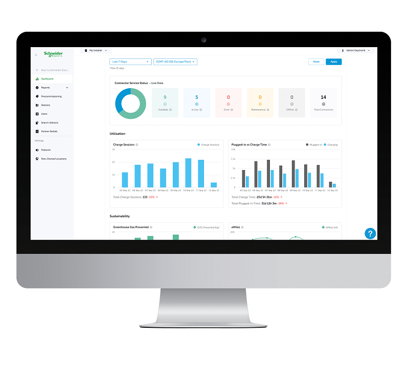 EcoStruxure EV Advisor permet de minimiser les temps d’arrêt des bornes de recharge. Avec des capacités de supervision en temps réel, d’analyse et de gestion à distance, cette nouvelle offre de logiciel en tant que service (SaaS) fournit aux opérateurs de points de charge (CPO) des informations précieuses sur les performances, la consommation d’énergie et l’efficacité opérationnelle. Les problèmes peuvent alors être résolus rapidement, ce qui contribue à assurer la fiabilité de l’alimentation, une continuité de service et à fournir une solution pratique aux conducteurs de VE.