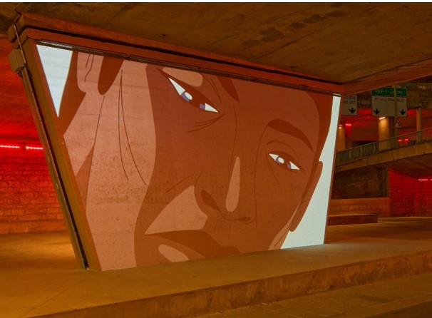 Pour donner encore plus de poésie à cet ensemble, Concepto a utilisé la grande surface des piles (36 m² : 9 m de large sur 4 m de haut) pour projeter des vidéos de 3 minutes chacune. Deux piles seulement seront retenues (budget oblige) : celles situées juste en face de l’arrêt de bus du 38. Elles servent de supports d’expression artistique et viennent dialoguer à la fois avec les mises en valeur mais également avec les usages nocturnes. En accord avec la mairie de Paris et sous l’impulsion de Concepto, Terideal a missionné Manifesto pour organiser un jury afin de sélectionner dix jeunes artistes, issus des plus grandes écoles d’art, pour mettre à l’honneur un savoir-faire innovant sur la thématique du sport, de la culture et du mouvement à l’occasion des JO.