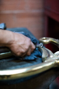 gestes, le quartz, la lumière, l’or, le bronze, l’argent… « Quand on a cette passion pour l’histoire des lustres, on doit absolument écrire l’histoire d’aujourd’hui, sinon il n’y aura pas de restaurateurs demain », confie Régis Mathieu.