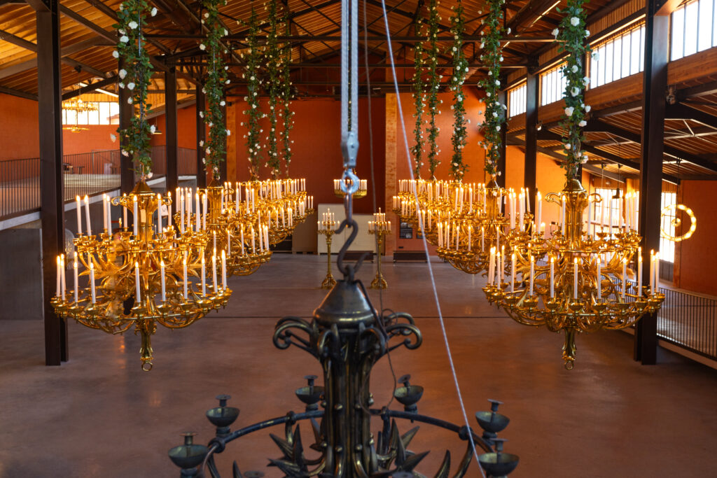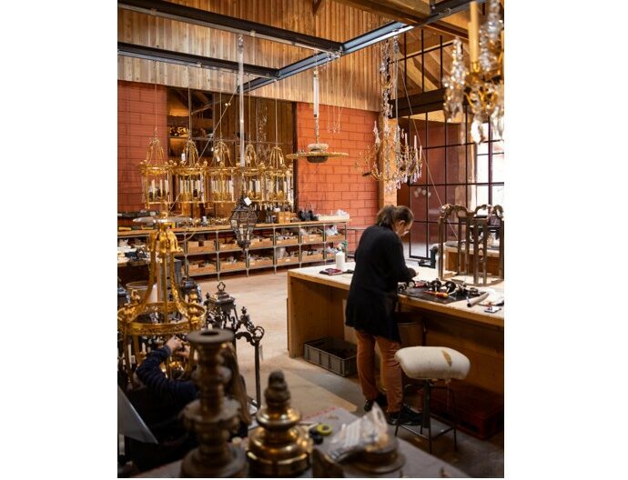 « Nous avons constitué une collection de plus de 1 000 lustres anciens. Nous avons aujourd’hui des lustres de toutes les époques, de tous les temps, dans tous les états, pour avoir comme un livre ou une base de données pléthorique, mais en réel », explique Régis Mathieu. Cette collection prend tellement de place qu’un bâtiment a été construit spécialement. « Je ne veux pas que le public vienne acheter des lustres ici, mais qu’il comprenne leur histoire. Cela permet de toucher tous les visiteurs et pas seulement ceux qui ont les moyens », précise Régis Mathieu. Dans ce bâtiment, appelé le musée, l’objectif est le partage, rendu possible par la gratuité de la visite. L’objectif est de créer une connexion entre les visiteurs et l’histoire de ces pièces, leur transmettre un peu de cette culture, et qu’ils quittent le musée des étoiles dans les yeux. Les visiteurs tournent autour des lustres, qui mesurent parfois plus de 10 mètres de haut, conçus pour les cages d’escaliers ou les salles d’opéra.