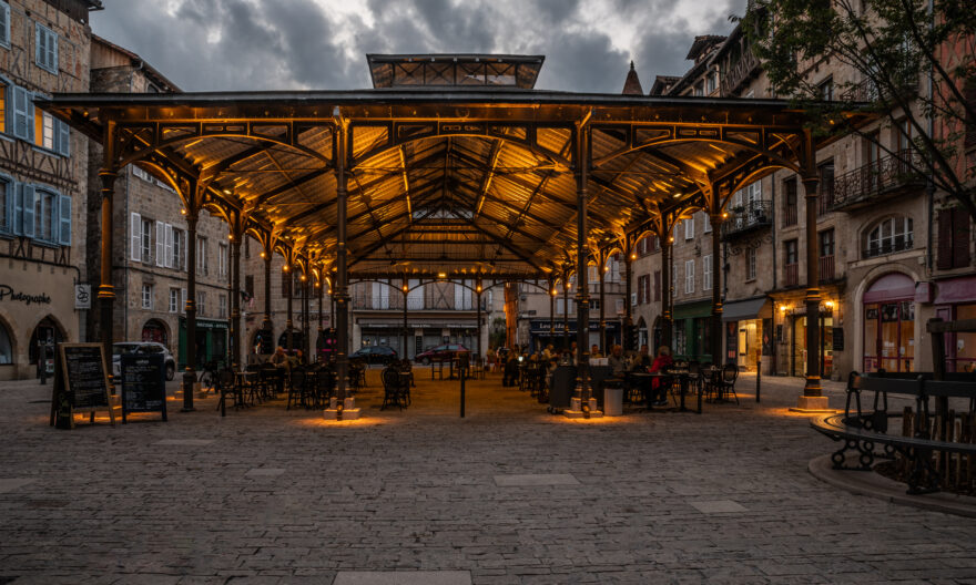 Lionel Bessières, concepteur lumière, Quartiers Lumières, a été mandaté par la ville pour éclairer la halle et la nouvelle place. La halle n’en est pas à sa première réhabilitation : construite à la fin du XVIe siècle, elle a connu plusieurs transformations, dont celle réalisée au XIXe siècle qui a fait disparaître l’enclos en fer forgé. « La place Carnot est située à proximité de la place Jean-François Champollion, en l’honneur duquel une réplique de la pierre de Rosette a été sculptée, raconte Lionel Bessières. C’est dans ce contexte historique que nous avons travaillé et l’arasement du socle imaginé par Urbicus achève aujourd’hui la pleine restitution de l’espace compris sous la halle à celui de la place. »