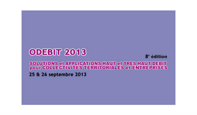 Faire le point sur les évolutions des solutions et applications haut et très haut débit (XDSL • FTTX • CPL • SATELLITE • WIFI • 5.4GHZ • MESH • WIMAX • PLATEFORME DE CONVERGENCE • TVIP & VIDEO SUR IP • VOIP • TMP • RTTX • LTE/4G • NFC • DATACENTER…) tel est l’objectif de la 8ème édition du salon ODEBIT, l’évènement majeur de la rentrée professionnelle en France qui confirmera – durant 2 jours – la forte implication des principaux acteurs de ce marché.