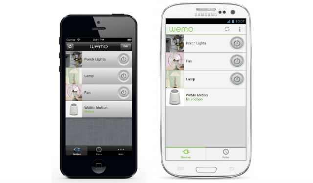 Compatible avec la plupart des appareils WeMo actuels et futurs, tels que l’interrupteur WeMo et l’interrupteur + détecteur de mouvement WeMo, l’application entièrement fonctionnelle permet aux utilisateurs de commander leurs appareils électroniques où qu’ils soient, connectés en Wi-Fi ou 3G/4G. L’application s’utilise également avec IFTTT, un service en ligne qui crée des actions/réactions par l’entremise de divers services Internet, comme la messagerie électronique, la météo et les médias sociaux. Par exemple, il est possible de créer une règle sur IFTTT pour envoyer un texto sur son téléphone chaque fois qu’un interrupteur + détecteur de mouvement WeMo détecte un mouvement, ou encore allumer une lampe au coucher du soleil.