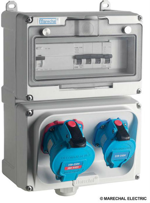 Protection électrique : Prises électriques industrielles sur coffrets avec protection