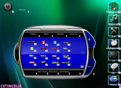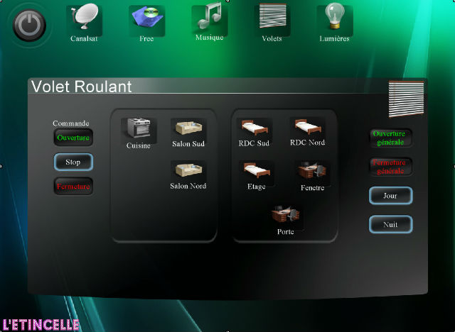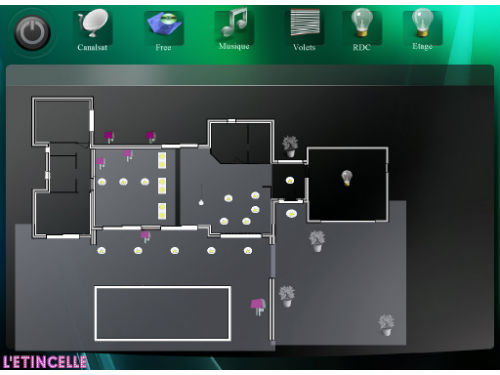 La proposition s’est faite en 2 étapes : – La mise en service de l’installation et le fonctionnement en autonome de l’éclairage et des volets roulants. – La mise en place du home cinema et l’intégration de l’interface graphique pour l’interconnexion du système, la mise en service de scénarii avancés. Le client commande ses volets depuis son Ipad (en local), son iphone (à distance) et depuis les interrupteurs muraux My Home.
