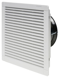 Dans la version CEM, les pièces du ventilateur et du filtre d’aération sont connectées avec le boîtier métallique de l’armoire électrique, les interférences étant ainsi fortement diminuées.