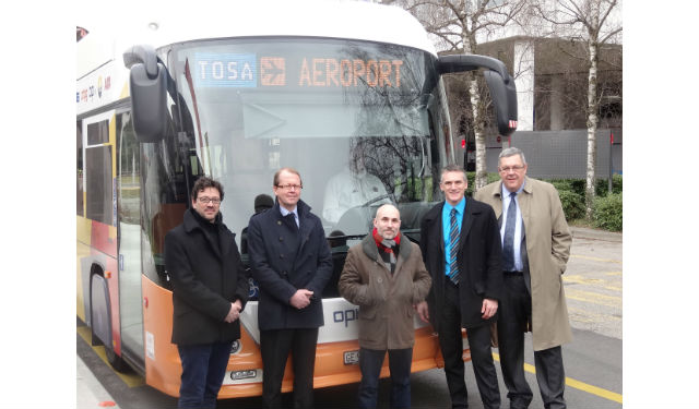 En Effet, Pierre Serne a exprimé sa volonté de sortir du bus diesel et de les remplacer par une solution électrique pour les transports publics d’Île-de-France. À ce titre, il a souhaité évaluer une solution déjà opérationnelle sur une ligne de transport à Genève. Il a pu ainsi échanger avec le Directeur technique des Transports Publics Genevois (TGP). « Dans le cadre du plan de sortie du diesel des bus en Île-de-France, je me dois en tant que Vice-président du STIF d’étudier toutes les solutions techniques existantes qui permettront la réussite de ce plan. J’ai ainsi été fortement impressionné par le projet TOSA qui s’apparente en terme de capacité d’emport de voyageurs à un trolleybus sans ligne aérienne de contact : un élément non négligeable permettant une bonne insertion urbaine et un meilleur accueil des habitants. Je pense que cette technologie a un véritable avenir et surtout si elle est couplée à une production autonome d’énergie renouvelable par panneaux solaires ou autres.»commente Pierre Serne suite à sa visite.
