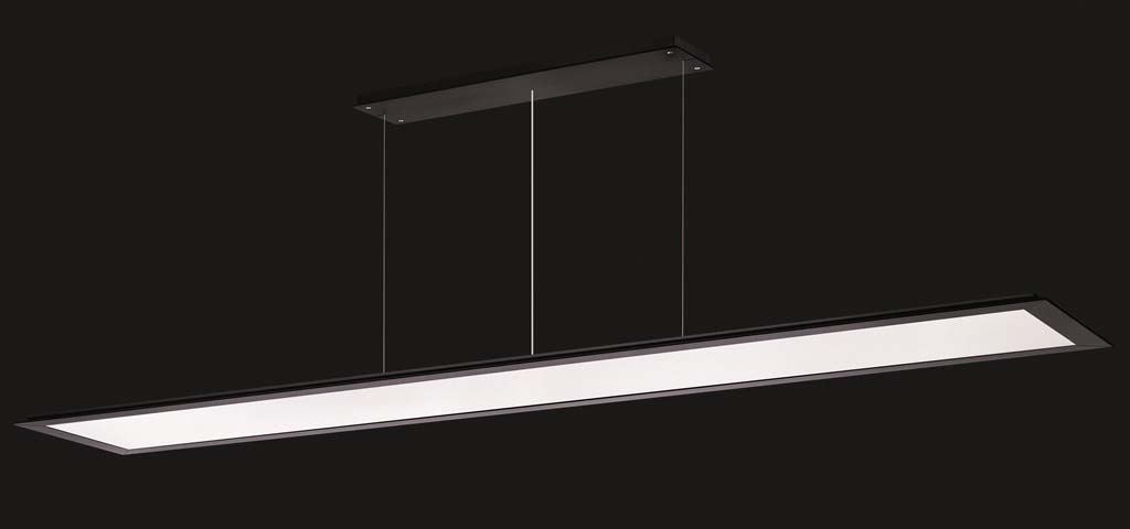 PROD_15.-SL713-SPITTLERCette suspension LED ultra mince pour éclairage direct/indirect propose une efficacité lumineuse de 80 lm/W (1,6 W/m²/100 lux seulement) et deux flux lumineux : 3 850 lm pour une température de couleur de 3 000 K et 4 070 lm pour 4 000 K avec un IRC de 80. La durée de vie annoncée est de 50 000 heures (maintien du flux à 70 %).