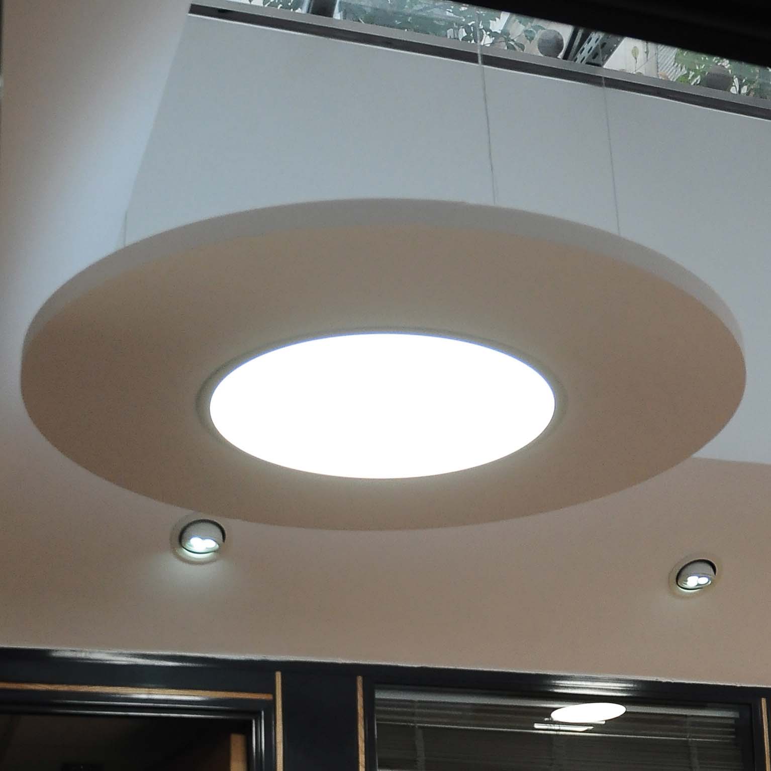 Dans les installations tertiaires, cet encastré apporte un confort optimal grâce à une technologie 100 % LED et des panneaux acoustiques (laine de roche). Il suffit de choisir l’îlot acoustique, rond, carré, ou ovale et de sélectionner le luminaire à intégrer, parmi une large gamme appropriée, pour une solution adaptée à chaque type d’environnement.