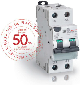 Ce disjoncteur compact comportant deux pôles et protégé en deux modules permet un gain de place de 50 % supplémentaire dans les armoires de distributions tout en proposant une protection complète. Il associe à la fois une protection des personnes et une protection magnéto-thermique des 2 pôles en seulement 2 modules. La gamme propose de hautes performances en 4.5, 6 et 10 kA, chacun en type AC, A et Ai (haute immunité). L’ensemble de l’appareil est compatible avec les fonctions auxiliaires et accessoires de la gamme ElfaPlus et le poids du module atteint les 160 g.