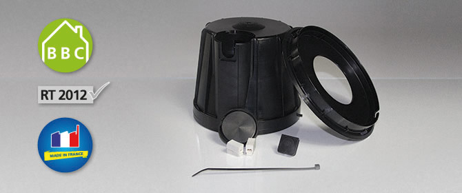 Dernier-né de la famille SpotClip, le support protecteur pour spots encastrables SpotClip- Box est conçu pour répondre aux impératifs de la Réglementation Thermique 2012 et des constructions résidentielles BBC (Bâtiment Basse Consommation). Sa conception rigoureuse et son design innovant en forme de réceptacle étanche assurent une protection optimale à 360°C entre l’ampoule et l’isolant et réduit au maximum les échanges thermiques entre la pièce à éclairer et l’extérieur, tout en évitant le contact entre l’ampoule et les matériaux isolants. Cela tout risque de surchauffe et, donc, d’incendie.