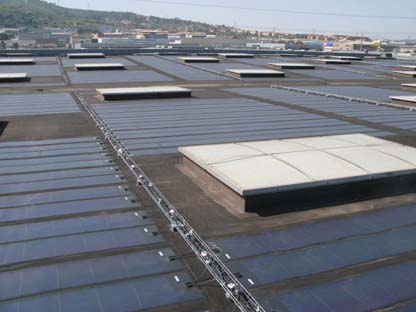 La nouvelle solution d’étanchéité photovoltaïque Soprasolar de Solardis réinvente et simplifie l’intégration du photovoltaïque sur toiture-terrasse sans percement de l’étanchéité. Elle intègre des modules photovoltaïques rigides. Garantie pendant 20 ans, sa durée de vie peutpeut aller au-delà des 30 ans. Le système est destiné aux toitures-terrasses inaccessibles des bâtiments en climat de plaine (< 900 m), jusqu’en zone de vent 4 et en zone de neige E, sur élément porteur en maçonnerie et en béton cellulaire (≥ 1 % minimum) ou sur tôle d’acier nervurée et panneaux dérivés bois (≥ 3,1 % minimum). Léger (1,3 kg), le système est compatible avec tous les isolants supports d’étanchéité de classe C minimum. Il permet un gain de poids en toiture allant jusqu’à 50 %.