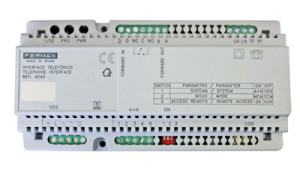 L’interface téléphonique Fermax permet de contrôler un logement, commerce ou bureau depuis n’importe quel fixe ou portable. Les appels peuvent être transférés vers l’extérieur grâce à la ligne téléphonique, et ainsi ouvrir la porte à distance. Cette interface est utilisable aussi bien avec les installations analogiques 4+N que VDS. L’interface présente également d’autres points positifs : possibilité de répondre à un appel provenant de la platine de rue si vous êtes chez vous, aussi bien d’un poste/moniteur FERMAX que depuis n’importe quel téléphone fixe ou sans fil. Si vous êtes absent, vous pourrez transférer l’appel du portier électronique ou du vidéo portier vers un téléphone extérieur fixe ou portable, en contrôlant votre porte à tout moment.