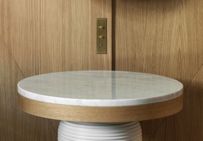 La marque a signé l’ensemble de l’appareillage électrique de l’hôtel, en laiton traité, dont les finitions sont réalisées par la main de l’homme.