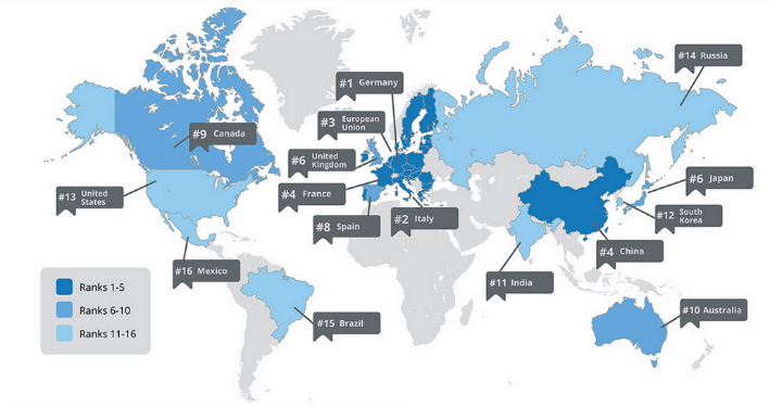 Selon une étude menée par l’American Council for an Energy-Efficient Economy, l’Allemagne serait le champion mondial de l’efficacité énergétique, grâce notamment à une législation sévère dans le secteur du bâtiment. La Chine et la France sont ex aequo et occupent la quatrième place du classement.