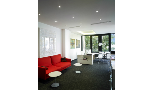 Enfin, la mise en place d’un système de contrôle d’accès par badge et d’une borne d’accueil virtuel située dans le hall d’entrée ont permis de trouver un compromis entre présence permanente d’une hôtesse d’accueil et accès libre non sécurisé. En dehors des heures de bureau, un visiophone situé sur la rue complète le dispositif, avec la possibilité de renvoi vers différents postes de travail ou vers les téléphones mobiles.