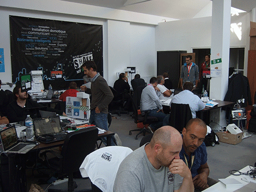 Dès 14h, les participants se retrouvent, s’installent, discutent et échangent. Et à 15h30, les épreuves commencent pour les équipes formées par affinité. 4 épreuves de configuration autour du maintien à domicile, Papy, d’une maison de standing, Pétunia du nom de la propriétaire, d’un bâtiment tertiaire, CCTP m’as tuer (écrit ainsi dans l’épreuve distribuée) et « si le titanique avait été domotisé, aurait-il coulé ? ». L’objectif de l’épreuve titanique était d’empêcher le paquebot de sombrer tout en permettant à Jack de rejoindre Rose, puis de l’amener en sécurité au centre du bateau dont les ouvertures/fermetures des portes doivent le conserver à flot.