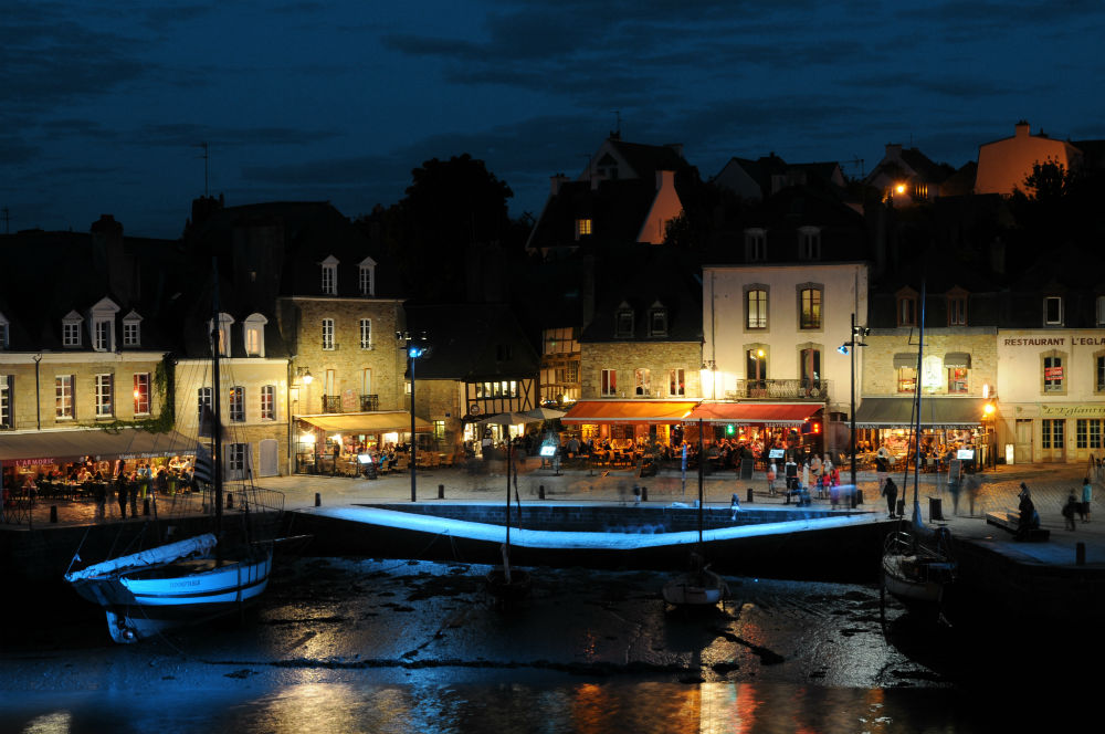 Le projet d’éclairage permet de donner de la profondeur visuelle aux quais avec des nuances allant du blanc chaud (2 800 K) au bleu pâle au fur et à mesure que l’on s’éloigne des façades vers les éléments portuaires. Sur les bords des quais, l’histoire du site (construit au XVIIe siècle) est évoquée par la projection au sol de l’ombre de navires anciens ayant accosté à Auray. « Nous voulions aussi, précise Anne Bureau, rendre perceptible la mémoire des lieux.