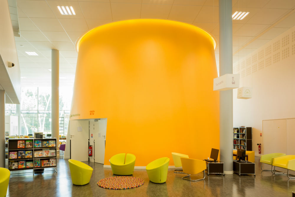 Cube de lumière posé au milieu de la place de l’Abbaye à Créteil, la toute nouvelle médiathèque a ouvert ses portes au public au printemps dernier après trois années de travaux. Sur plus de 5 200 m², cette médiathèque tout en fibres et en transparence, conçue par le cabinet d’architectes Chabanne & Partenaires, propose une multiplicité de prestations et permet d’envisager une grande diversité d’usages par tous les publics: