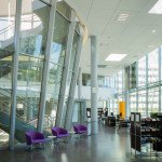 À l’intérieur, l’accent a été mis sur le confort visuel des visiteurs du lieu avec l’installation de plus de 300 encastrés Ector équipés de 3 tubes fluorescents T5 de 14W : 254 luminaires dans les espaces publics et 58 encastrés compatibles avec une gestion d’éclairage DALI avec détection de présence et de luminosité dans les bureaux.