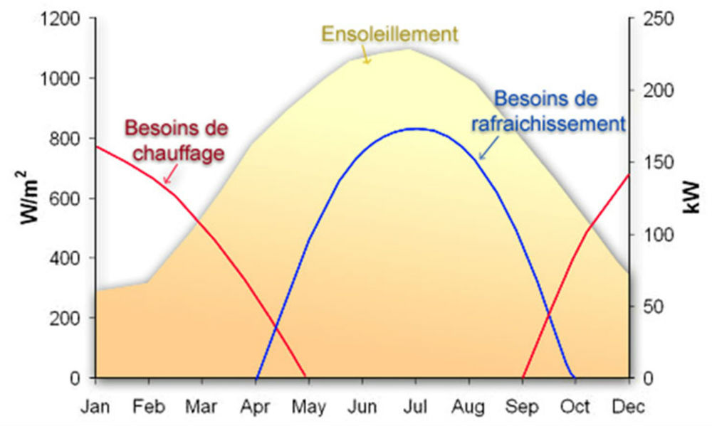 Ces technologies présentent l’avantage d’un haut potentiel de valorisation de la ressource solaire toute l’année, d’une faible consommation électrique (réduite à la pompe de circulation du fluide et à la régulation du système) et utilisent des fluides frigorigènes non nocifs pour l’environnement.
