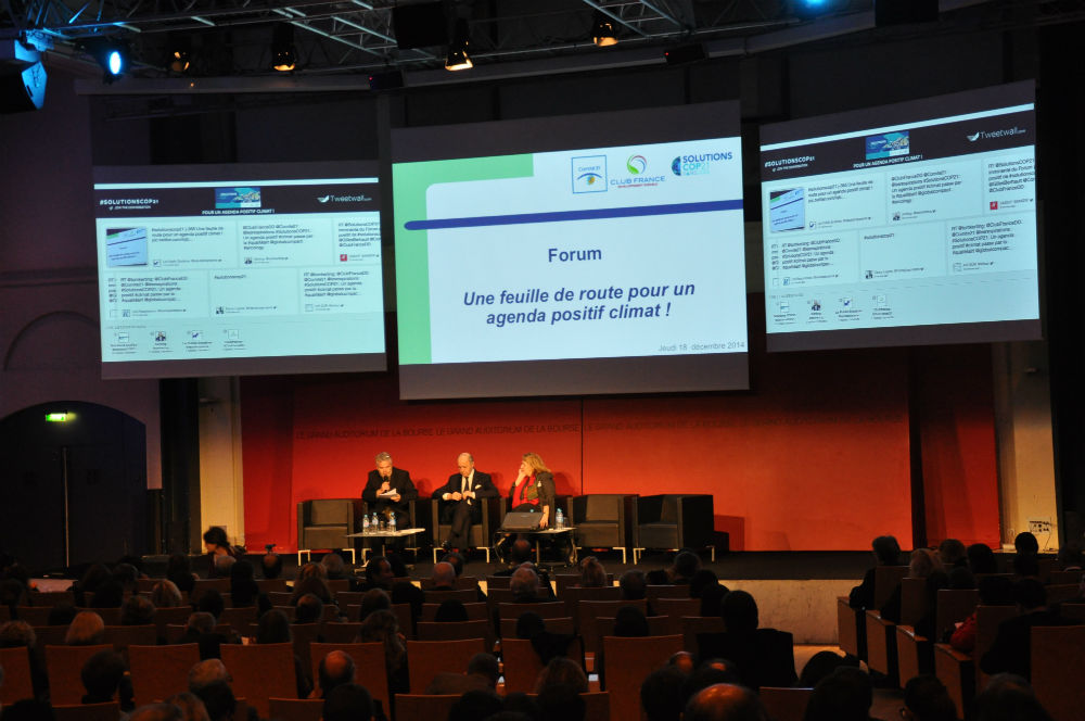 Il est 8h du matin à l’ancienne Bourse de Paris, et le Ministre se fait attendre. Pour l’accueillir, des acteurs de tous horizons : ambassadeurs, acteurs institutionnels et civils, venus entendre les intentions affichées par la France, à un an de cette Conférence dont on attend beaucoup. La salle se remplit et l’invité d’honneur arrive enfin. Gilles Berhault et Bettina Laville, fondatrice du Comité 21 et présidente du Comité d’orientation scientifique du Club France développement durable rappellent en préambule l’obligation pour la France de convaincre les négociateurs ainsi que la forte implication de la société civile, autant au niveau des entreprises que des citoyens. La prise de conscience est aujourd’hui effective pour la plupart, reste à convaincre les sceptiques.