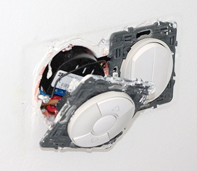 - 6 Micromodules Volets Fibaro FGRM221 sur lequel est branché l’interrupteur traditionnel pour une commande locale. Il est important de bien paramétrer le type de bouton. Ce paramètre peut varier en fonction du type installé. Pour les interrupteurs Céliane volet de chez Legrand il faut choisir le type Toggle switch dans le paramètre 14.