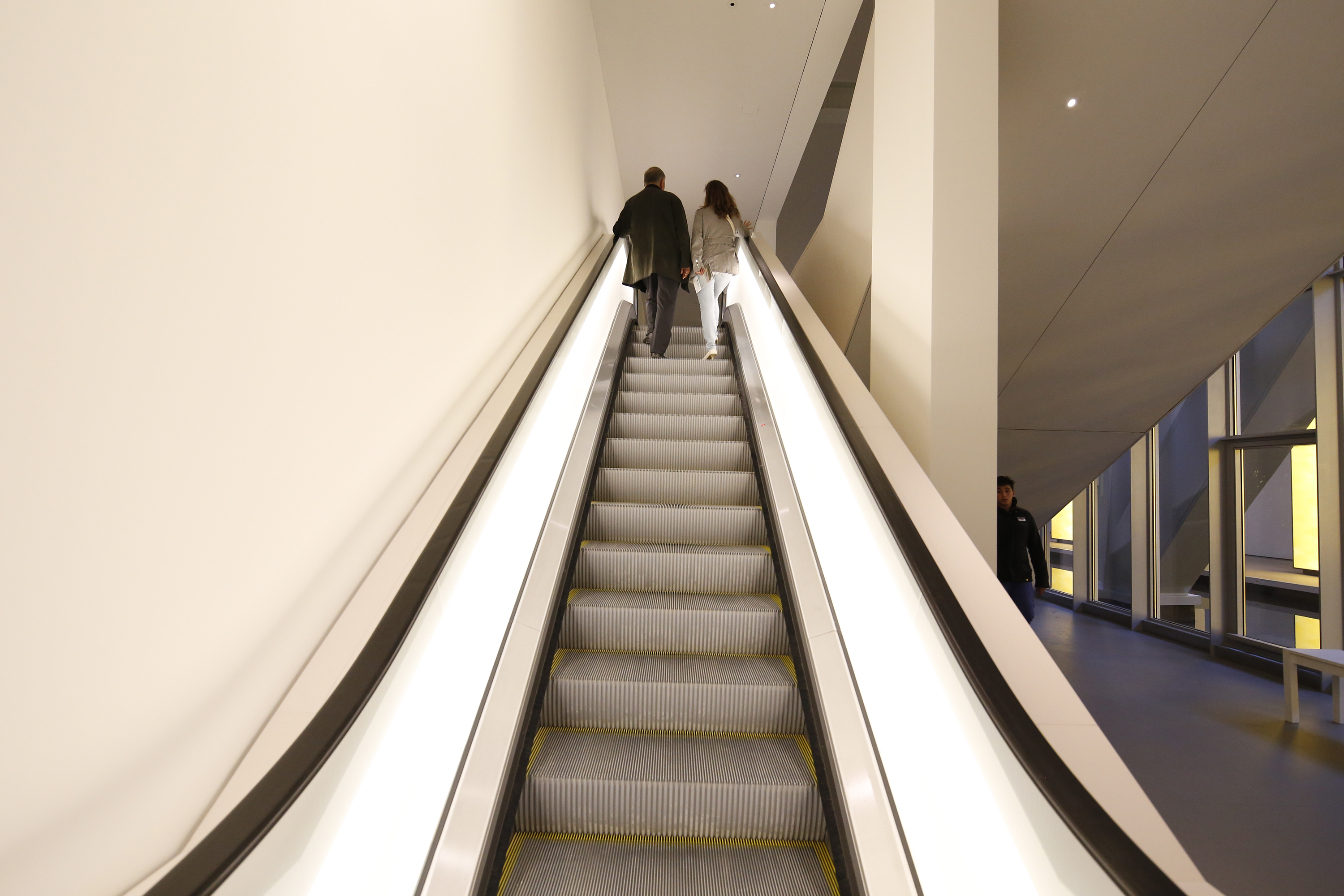 La réponse a consisté à définir deux types d’éclairage : l’un, général, est réalisé à l’aide d’encastrés et spots Erco (adaptés aux besoins du musée) ; l’autre, destiné à l’accentuation, est constitué d’un dispositif escamotable qui peut disparaître dans le plafond et qui supporte des projecteurs mis en place pour les besoins spécifiques d’une exposition.