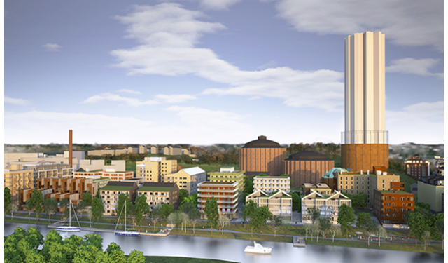 En 1967, la Suède créait le Naturvardsverket, la toute première agence nationale pour la protection de l’environnement détenant une responsabilité totale des problématiques environnementales. Presque cinquante ans plus tard, le pays n’a rien perdu de son avance et de son intérêt en matière de développement durable. Après le succès de l’écoquartier de Hammarby Sjöstad, un nouveau projet de construction durable prend place dans le nord-est de la ville de Stockholm, dans le quartier de Hjorthagen. Au cœur d’une ancienne zone industrielle, le projet « Stockholm Royal Seaport » est en cours de construction depuis 2009, et représente le symbole du savoir-faire scandinave en matière de développement durable et de planification urbaine. Le projet est immense : il regroupera, à terme, plus de 10 000 nouveaux logements, espaces économiques ou culturels et lieux de détente, pour une superficie totale de 236 hectares. Si les premiers locataires ont pu emménager en 2012, la fin de la construction n’est prévue que pour 2030 : de nombreuses infrastructures doivent encore voir le jour. Parmi elles, la réhabilitation du plus grand gazomètre de la zone industrielle en un complexe d’une centaine d’appartements, imaginée par le cabinet d’architecture suisse Herzog & De Meuron. La métamorphose des bâtiments de briques rouges de l’ancienne usine à gaz est également au programme : ces derniers seront transformés en musées, salles de spectacles, restaurants et autres espaces culturels. En parallèle de ces projets architecturaux impressionnants, l’aspect écologique de la construction est exemplaire. L’objectif du projet est ambitieux : créer un quartier indépendant des énergies fossiles d’ici la fin de sa construction en 2030, et réduire les rejets d’émissions de CO2 des individus à 1,5 tonne par personne (contre les 4,5 tonnes en moyenne et par personne actuellement). Pour atteindre ce but, la dépense énergétique des nouvelles constructions est passée de 90 à 55 kW/h par mètre carré. Outre la transition énergétique des bâtiments, de nombreuses mesures écologiques seront mises en place au sein de ce futur quartier écologique, appelé Norra Djurgardsstaden.