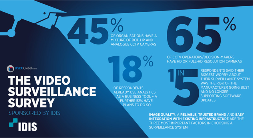 Ifsec Global vient de publier un livre blanc sur les technologies de vidéosurveillance actuellement installées au Royaume-Uni et dans le monde. Des centaines de chefs de la sécurité et autres décideurs clés dans l’acquisition et l’exploitation de systèmes de surveillance ont été interrogés. Le document de recherche examine, entre autres, les dernières statistiques sur l’utilisation de l’analyse statistique comme un outil de travail et la migration actuelle de l’analogique vers l’IP.