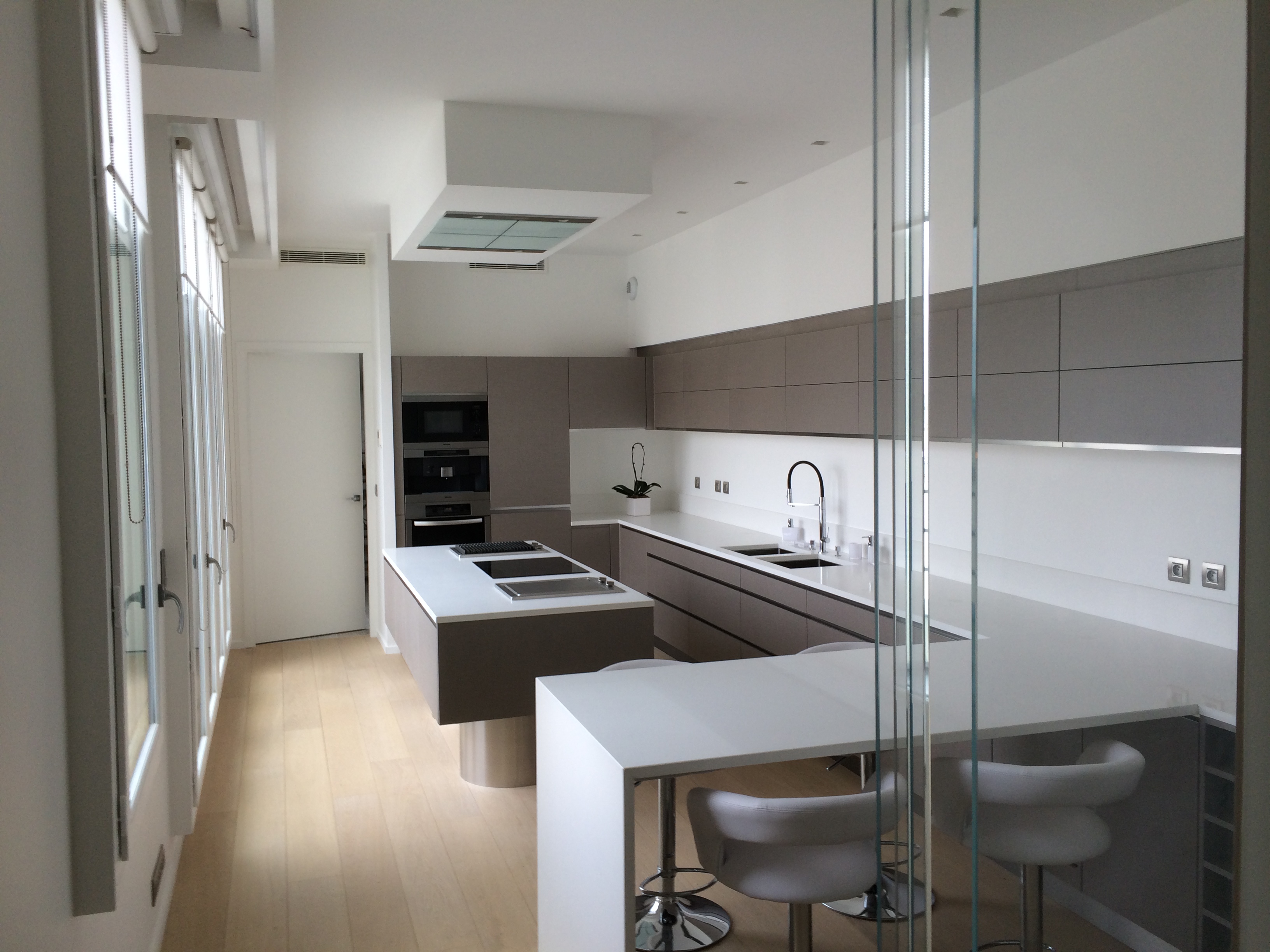 A paris, un investisseur a acheté un immeuble de 7 étages dans lequel il a conservé 2 étages pour lui et les autres ont été mis à la vente après rénovation. Dedans se trouve un appartement en quadruplex 5ème, 6ème, 7ème étages et sous-sol. Olivier Darnault, Artefact, était en charge des plans de câblage, de la réalisation des tableaux et programmation en sous-traitance d e l’électricien en place.