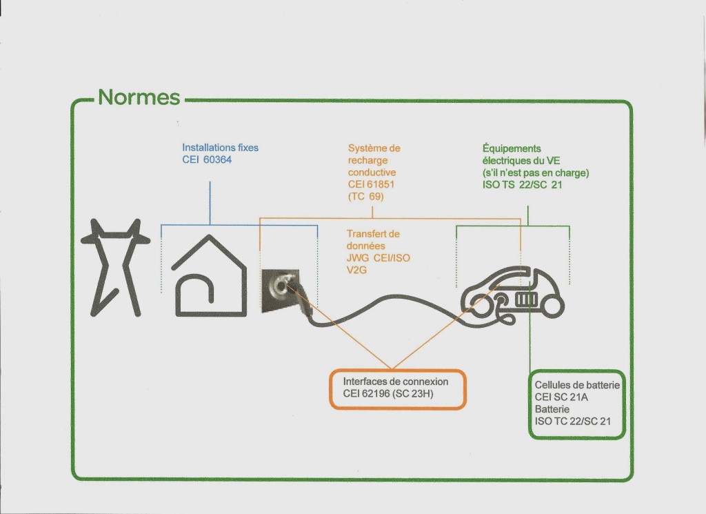 Ces prises sont parfaitement définies par la norme internationale IEC 62196-2 et -3 en cours de révision. Ces normes sont transcrites en normes européennes EN et françaises NF. À noter que la France est particulièrement impliquée dans ces travaux : la France via l’Afnor assure le secrétariat du comité SC 23H de la CEI en charge de ces travaux en la personne de Bertrand Doignon de Marechal Electric, un poste stratégique pour suivre et diriger ces travaux. Cette standardisation mondiale de 2 prises, que l’on n’a jamais pu atteindre en distribution domestique, est importante pour la diffusion du véhicule électrique. Les chargeurs sont couverts par la norme IEC 61851 et la communication VE/infrastructures par la norme ISO 15118.