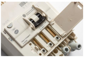 Le plus souvent les disjoncteurs de branchement sont montés sur des platines d’abonné eRDF type Fix-o-Rail 125. Pour raccorder les câbles de l’intérieur de la platine par une ouverture en haut et en bas du disjoncteur, GE a remplacé les serres fils par des bornes de raccordement pivotantes jusqu’à 30° facilitant l’insertion et le serrage des câbles. Cette innovation se traduit par un gain de temps d’installation conséquent et un raccordement plus facile pour l’installateur.