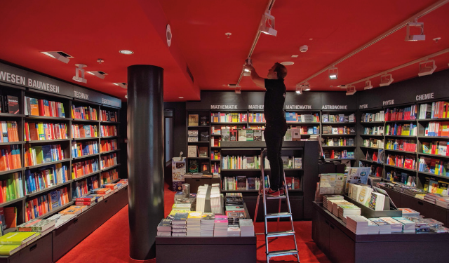 Sur la Friedrichstraße à Berlin, Dussmann das KulturKaufhaus est une sorte d’institution – un repère dans la vie culturelle et un lieu incontournable du shopping. L’établissement ouvert en 1997 propose sur une surface d’environ 7000 m² répartis sur 5 étages des livres, des CD, des DVD, mais aussi des partitions à profusion. Les affaires y sont excellentes contrairement à la tendance du secteur. Les responsables ont toutefois estimé qu’il était temps de réaménager les espaces de vente. La lumière devait jouer un rôle essentiel.