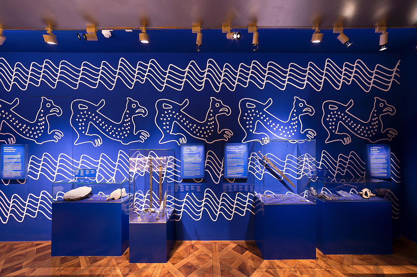 À chaque zone son ambiance. Au MAMUZ, des espaces thématiques, aménagés et décorés en fonction des collections accueillies, viennent ponctuer les déambulations des visiteurs en les resituant dans l’époque exposée. Ce musée rassemble un nombre impressionnant d’objets qui proviennent de collections issues de temps immémoriaux et chacun des espaces de l’exposition répond à un aménagement qui lui est propre : l’espace « Le feu dans la vie et la mort » est ainsi entièrement dominé par des nuances de rouge. Une paroi exposée à un éclairage arrière dramatique suggère une façade en bois en flammes.