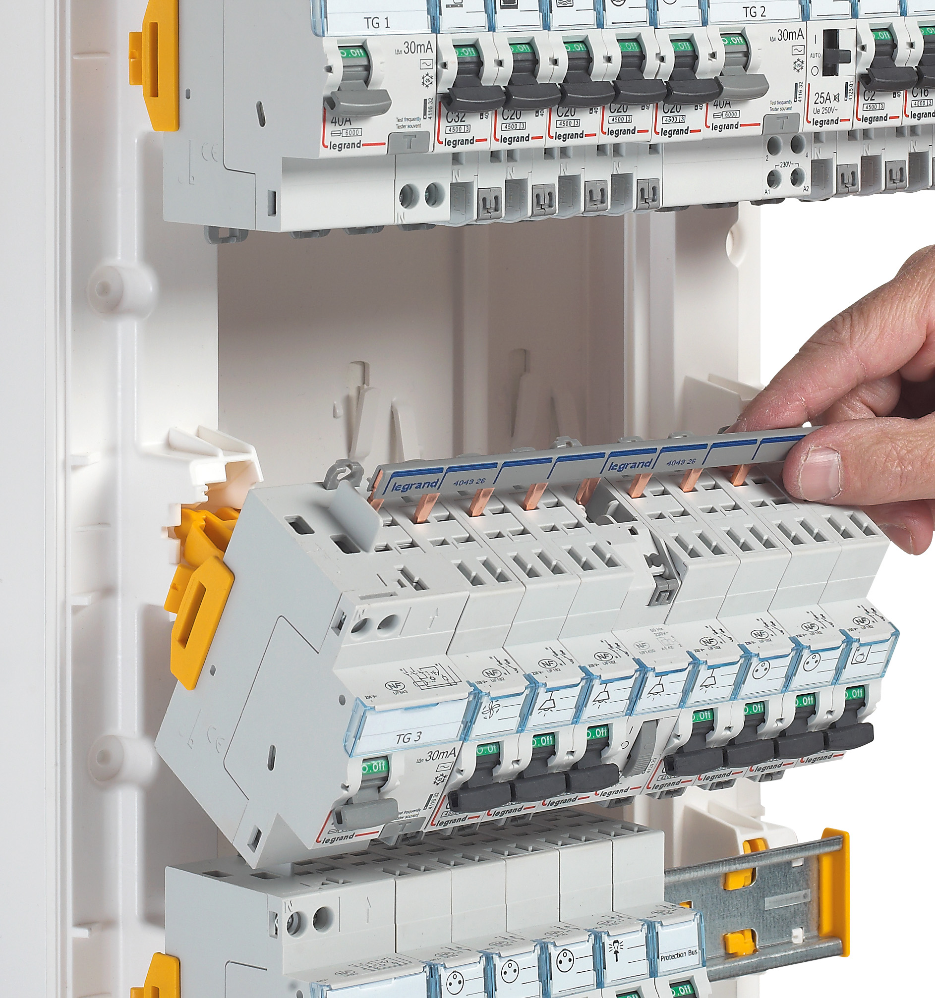 Des solutions diversifiées et adaptées L’offre de produits Legrand, adaptée à la nouvelle norme, continue de répondre aux besoins des utilisateurs et des installateurs. Parmi les solutions proposées, le tableau électrique à raccordement rapide facilite le travail des professionnels grâce à une répartition automatique par peigne.
